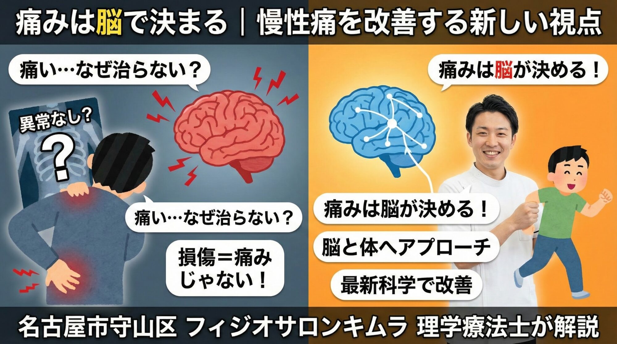 今回は、名古屋市守山区のフィジオサロンキムラ代表の私が、世界的権威であるロリマー・モズリー博士の理論をもとに、慢性痛の正体と解決策について解説します。