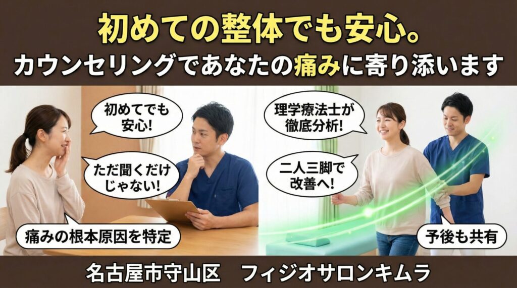 初めての整体でも安心。カウンセリングであなたの痛みに寄り添います