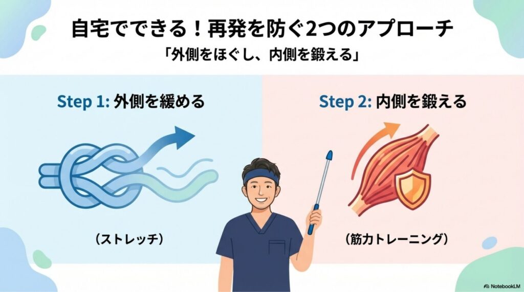施術の効果を持続させ、再発を防ぐための2つのアプローチをご紹介します。
