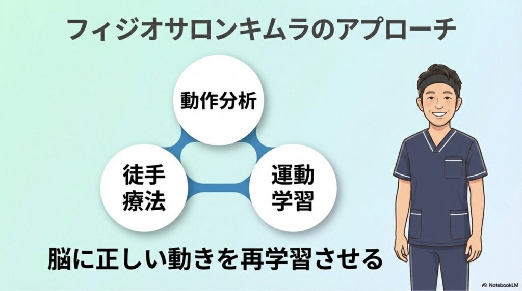 フィジオサロンキムラでは、以下のアプローチで根本改善を目指します。