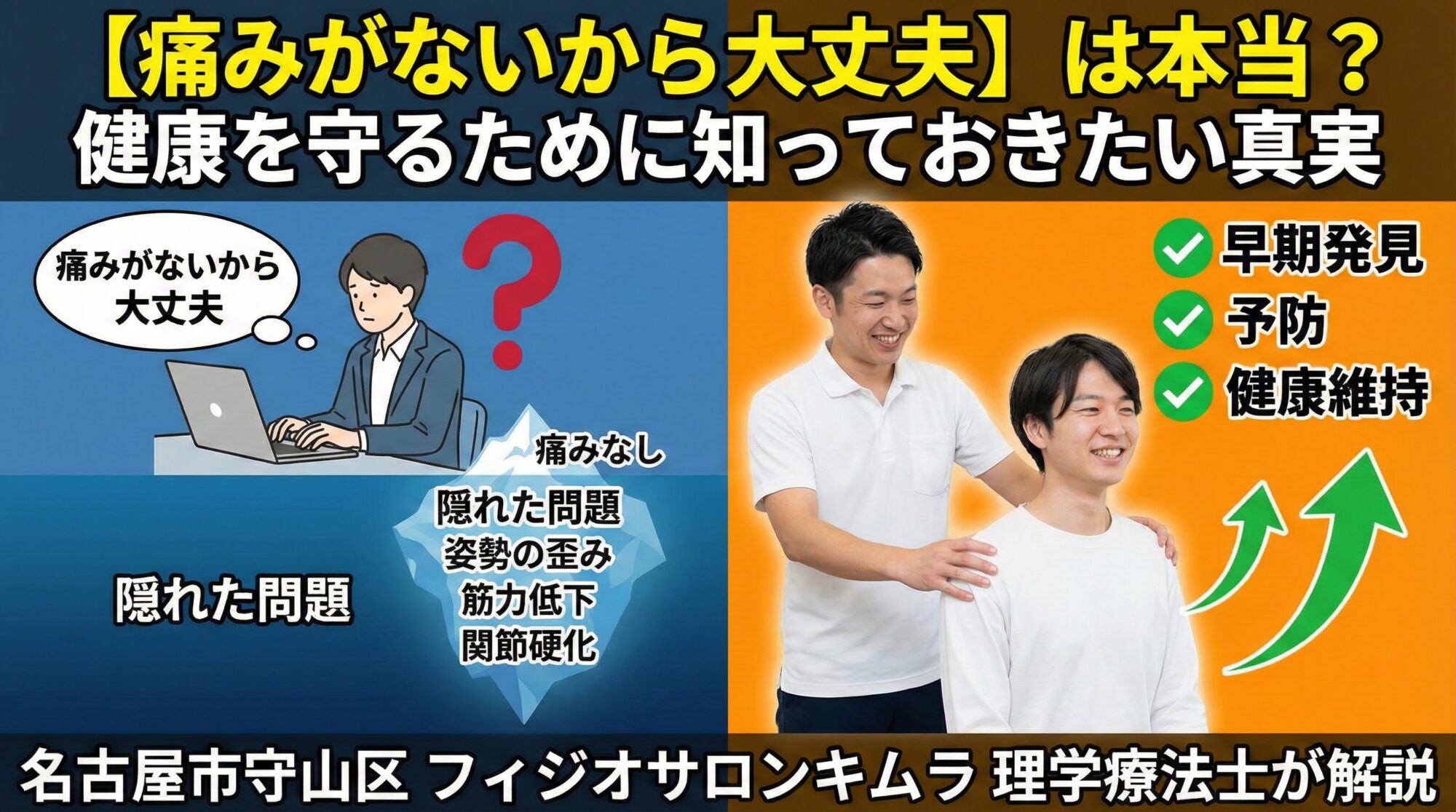 「痛くない=健康」ではありません。「痛くない=まだ誤魔化せている」だけかもしれないのです。