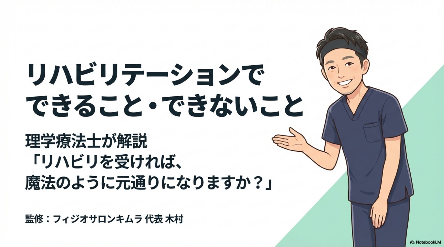 今回は、名古屋市守山区のフィジオサロンキムラ代表の私が、理学療法士としての経験から、リハビリの正しい効果と限界について正直にお話しします。