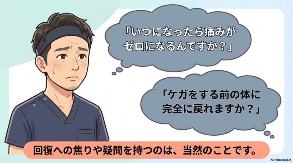 ケガや病気の後、回復への焦りから、このような疑問を抱くのは当然のことです。