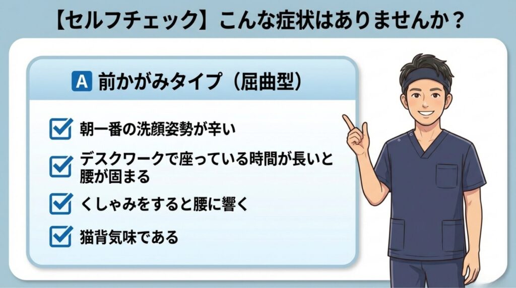 🅰️ 前かがみタイプ(屈曲型)のサイン