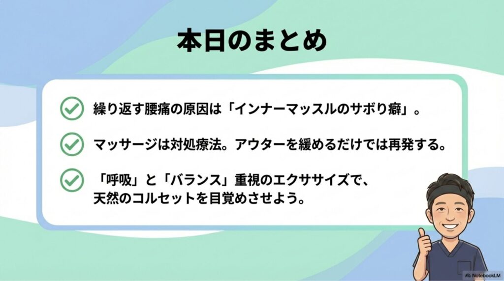 まとめ:腰痛を「繰り返さない」体をつくろう