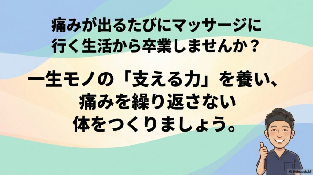 痛みが出るたびにマッサージに行く生活から卒業しませんか?