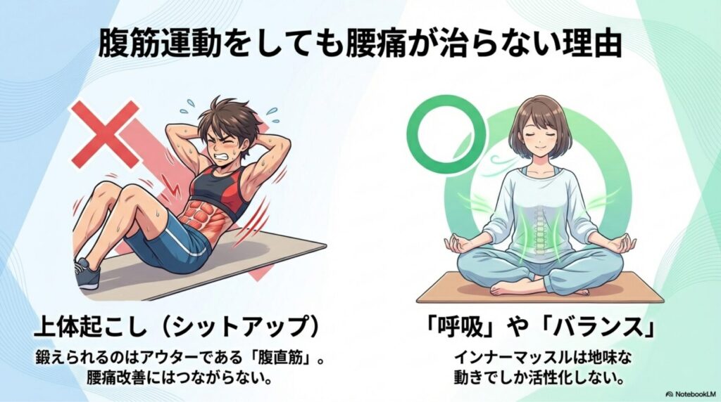 【現場の視点】腹筋運動をしても腰痛が治らない理由