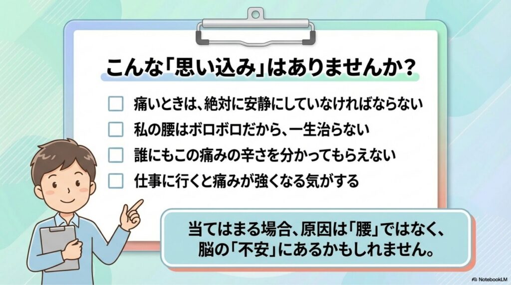 これらに当てはまる場合、あなたの腰痛の原因は腰ではなく、脳の「不安」にあるかもしれません。