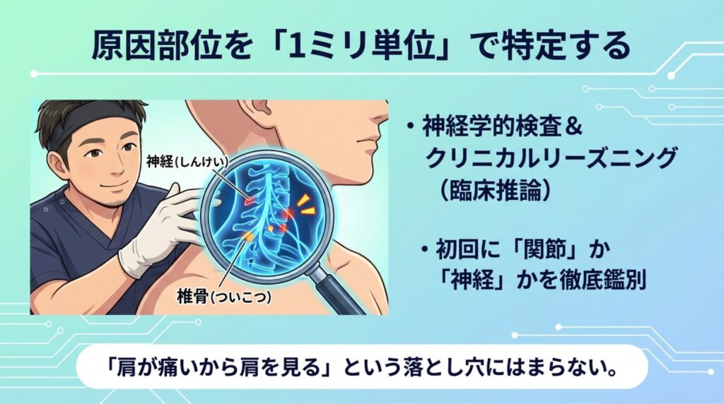 当院のアプローチ:原因部位を「1ミリ単位」で特定する