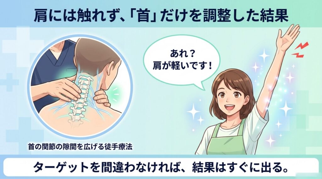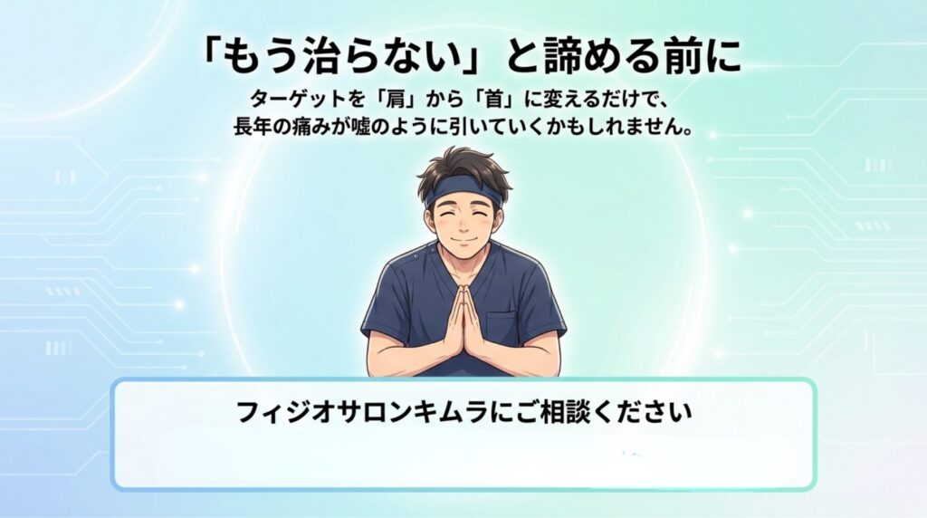 ターゲットを「肩」から「首」に変えるだけで、長年の痛みが嘘のように引いていくかもしれません。
