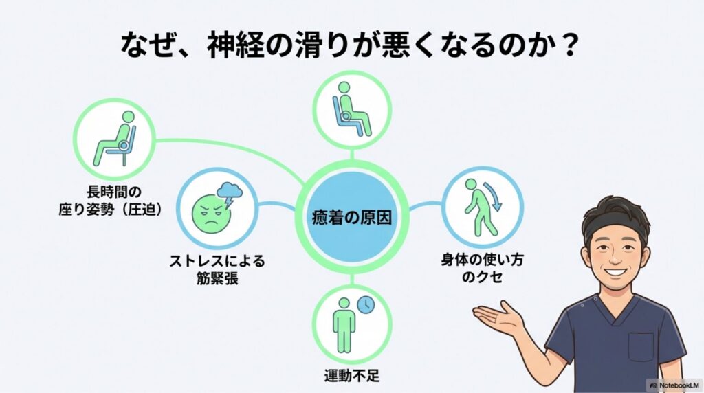 こうした要因で神経が “引っかかる” ようになると、